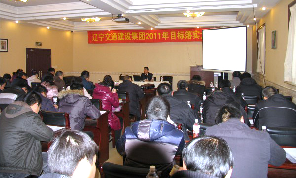 2011年1月17日至19日,辽宁交通建设集团目标落实大会在花园酒店隆重召开,会议首先由人力资源部部长王旸宣读了集团2011年任职文件,随后集团董事会主席张辉对“四会”任职做了说明,并就集团执行力和交建基本法做了生动、全面的讲解,指明了集团发展存在的问题以及今后的发展方向。集团副总裁张峰波、刘军、薛忠岩、赵志清结合自己分管内容从项目管理、党务工会和人力资源、财务管理、材料设备管理方面强调今年工作重点及目标。会议还邀请了律师事务所的法律专家来给大家培训法律方面的知识,来提高集团管理人员的法律意识,集团和各子公司在大会上还签定了2011年目标责任状,会议最后,集团董事会主席张辉结合大家实际工作从多方面进行了培训和指导,来提高集团管理人员的综合素质,新的一年已经到来,集团在新的一年开局之时大力度的增强管理人员的素质和知识水平,提高集团的执行力和战斗力,我们相信,2011年必定会成为集团快速发展的一年,使辽宁交通建设集团成为辽宁路桥建设标志性企业。下面是来自会场的图片: