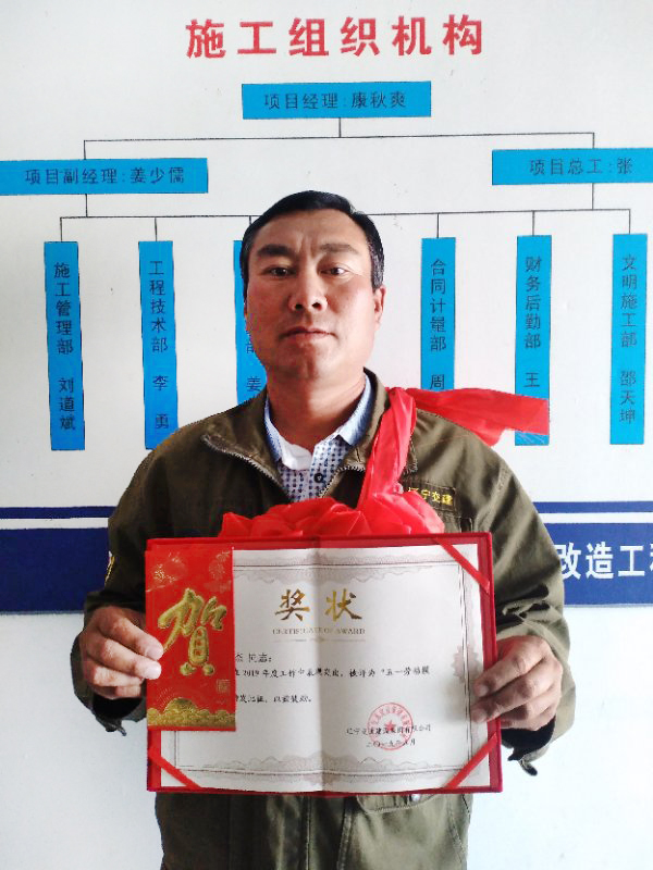 为庆祝“五一”国际劳动节,深入贯彻集团2019年奋斗目标,落实本年工作重点,展现集团一线员工的先进事迹和精神风貌。经集团董事会研究决定,授予于福新、王广、江洋、邹晓龙、孟繁涛、夏志杰六位同志为2019年辽宁交通建设集团有限公司“五一劳动模范”称号,并颁发劳动模范奖状。